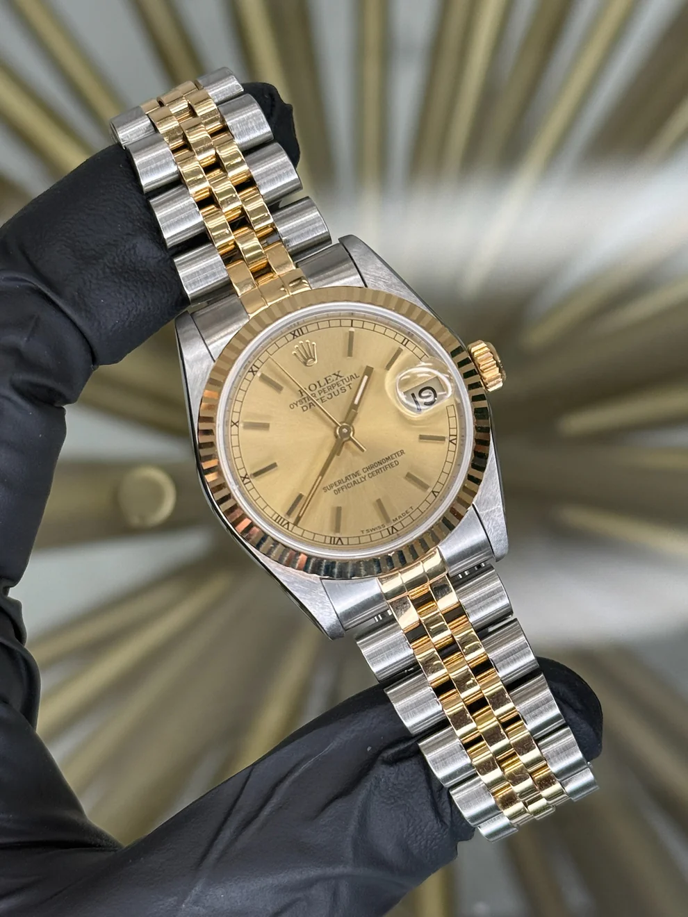 Rolex Datejust 31 Champagne Stick Dial on Jubilee 68273 1996 Papers